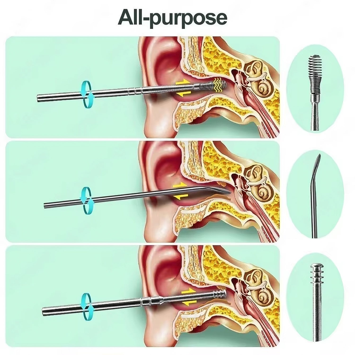 - Ergonomic Design: Different from the cotton swabs which may push further the way into the ear, the ear wax can effectively remove earwax. The spiral design ear cleaner can help you massage the ear canal and relieve itching. Anti-slip ergonomic design to provide a safety kit for your family.